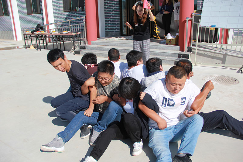 第一個(gè)項(xiàng)目是“眾志成城”,每個(gè)隊(duì)圍成一圈,背對(duì)背的坐在地上,在不用手撐地的規(guī)則下站起來……大家明白:只要團(tuán)隊(duì)齊心協(xié)力就可以閃耀出最大的光芒,所遇到的困難就能迎刃而解!