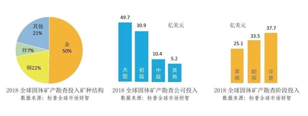 從勘查主體看,大型礦業(yè)公司投入占比增加,中小型勘查公司占比下降;從勘查階段看,草根勘查投入持續(xù)下降,詳查和勘探投入持續(xù)增長(zhǎng);從勘查礦種看,金、銅、鋅占比持續(xù)增加,鈾、鎳、金剛石占比持續(xù)下降;從勘查區(qū)域看,大型礦業(yè)公司逐步聚焦南北美、澳大利亞等地區(qū),大幅降低非洲、東南亞等地區(qū)勘查投入。