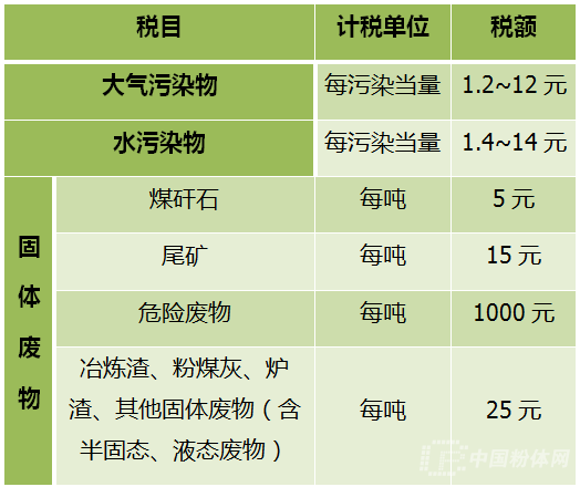 表1 環(huán)境保護(hù)稅稅目稅額表