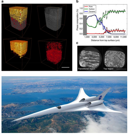 來(lái)自英國(guó)曼切斯特大學(xué)和中國(guó)中南大學(xué)的科學(xué)家合作,在經(jīng)過(guò)各種實(shí)驗(yàn)篩選之后發(fā)現(xiàn)了這種碳化物陶瓷涂層,該涂層是由碳、鋯、鈦、硼組成的復(fù)合材料,它比目前現(xiàn)有的任何一種碳涂層有著更好的抗高溫能力。該涂層能夠承受高達(dá) 5400 華氏度(約 3000 攝氏度)的溫度??茖W(xué)家認(rèn)為這種材料適合運(yùn)用在超音速飛機(jī)中。